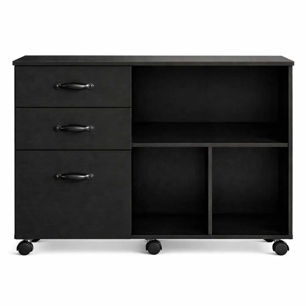 [3 Cassetti & 2 Ripiani Aperti] Questo schedario da ufficio include tre cassetti e due ripiani aperti. I due cassetti superiori sono adatti per cancelleria e piccoli oggetti, mentre il cassetto inferiore può contenere cartelle A4 o buste sospese per documenti. I ripiani aperti offrono spazio per libri e decorazioni, adattandosi a diverse ambientazioni come uffici e soggiorni.